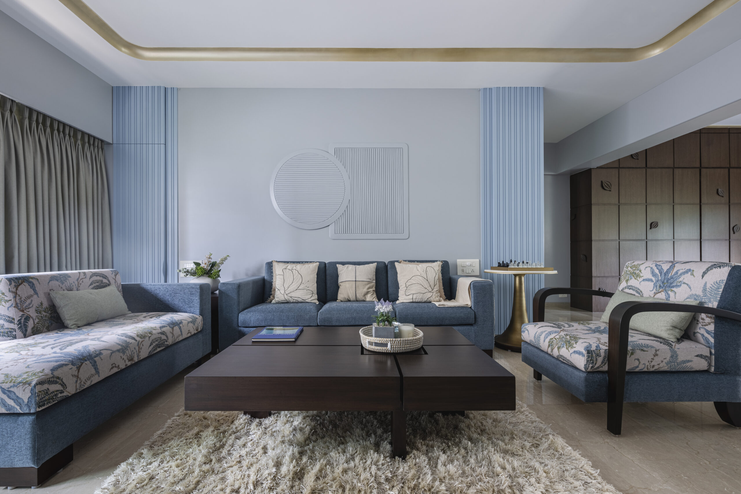 The apartment in Tareti at Napean Sea Road in Mumbai is a stunning example of sustainable interior design, where thoughtful reuse of materials and furniture takes center stage. By incorporating repurposed furniture pieces into the decor, the project reduces environmental impact while adding unique character to the space. The design seamlessly combines modern aesthetics with eco-conscious choices, including the use of natural materials, low-VOC finishes, and energy-efficient lighting solutions. Each element is carefully curated to preserve functionality and elegance, reflecting a commitment to sustainability without compromising luxury. This house highlights the importance of upcycling and sustainable interior design in modern homes, making it a standout project in Mumbai.